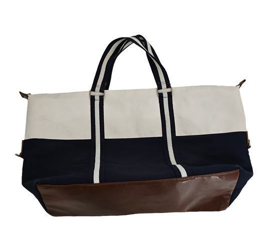 Ralph Lauren Polo Canvas and Leather Trim Duffle Bag - Navy & White - 25”x13”