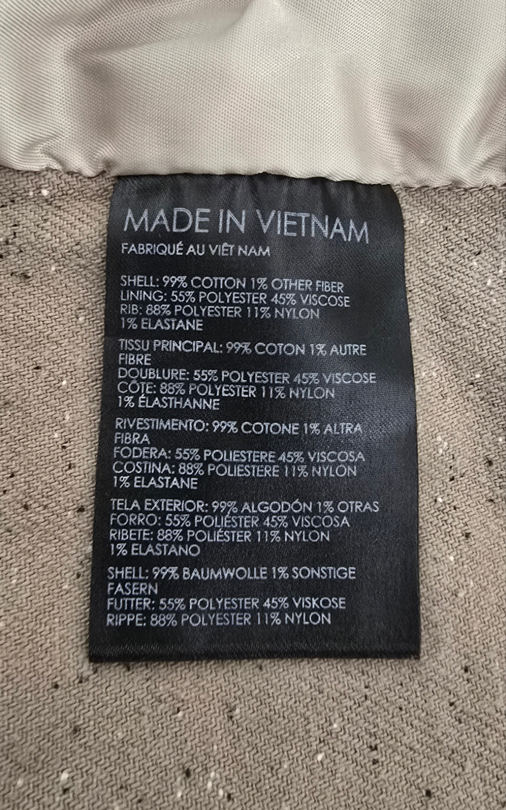 • Rib: 88% Polyester, 11% Nylon, 1% Elastane
