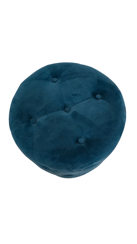 Regular price $140.00Regular priceUnit price / perSale price $140.00Add a touch of luxury to your space with this beautiful pair of blue velvet ottomans. Featuring deep tufted detailing and a striking gold base, these round ottomans are perfect for extra seating, a stylish footrest, or even a chic accent in any room. Both are in great condition—please note one has a visible mark as shown in the photo. Sold only as a pair.