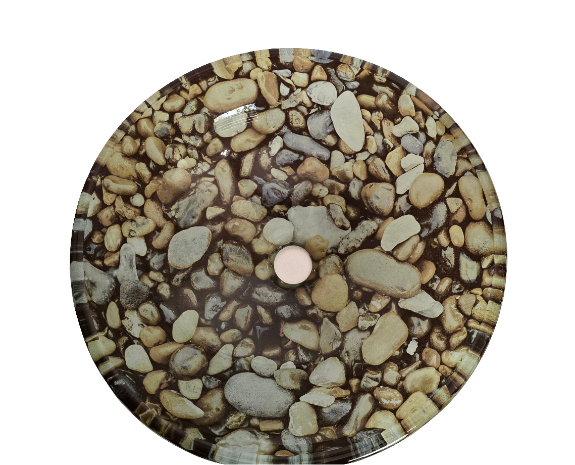 Designed with a realistic river rock pattern, this bowl adds a spa-inspired touch to any vanity. Made of thick, durable tempered glass, it is both elegant and long-lasting.