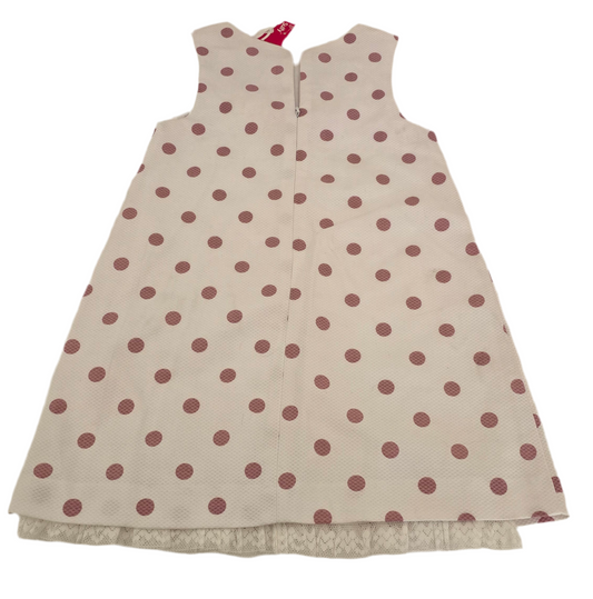Regular price $18.00Regular priceUnit price / perSale price $18.00Soft, charming, and full of playful elegance, this DULCE dress features a textured white fabric with pink polka dots and a delicate crochet-style bow detail. A beautiful piece for special occasions or everyday cuteness — brand new and ready to wear.