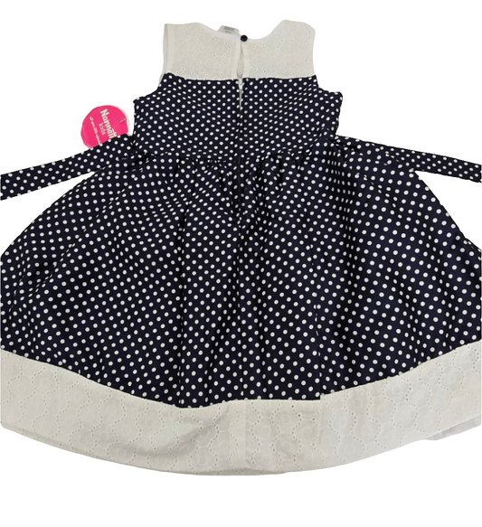 Nannette Kids Navy Polka Dot Dress with Bow - Girls Size 5 (New)
