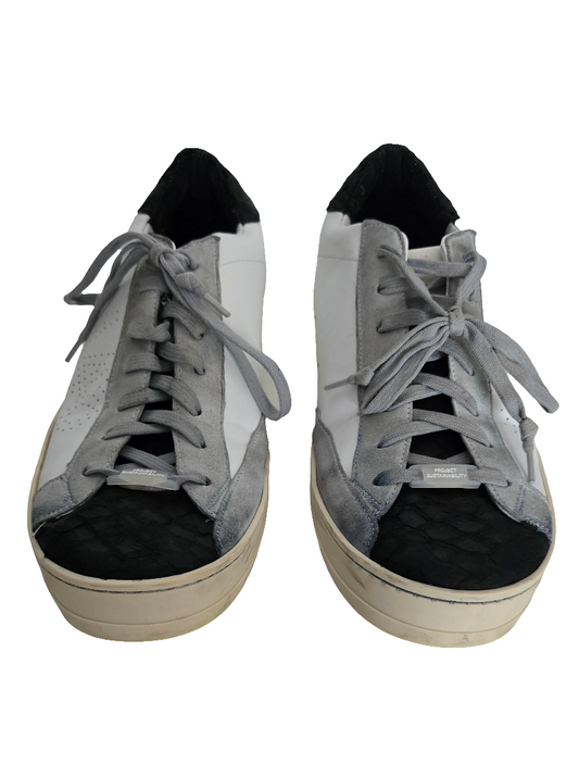 Regular price $120.00Regular priceUnit price / perSale price $120.00Step up your look with these stylish and eco-conscious sneakers from P448’s Project Sustainability line. Featuring a modern design with white leather, grey suede accents, and a black textured toe cap, these sneakers combine fashion with purpose.