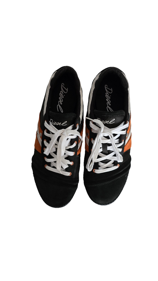 Regular price $50.00Regular priceUnit price / perSale price $50.00Stand out with these Diesel Full-Time lace-up sneakers in black, white, and orange. A stylish and comfortable pair perfect for casual wear or adding a sporty touch to your outfit.