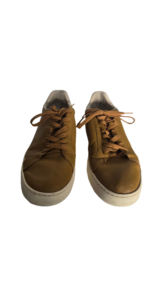 Regular price $10.00Regular priceUnit price / perSale price $10.00Classic and versatile, these Zara boat shoes combine casual style with comfort. Featuring a two-tone beige and brown leather upper with traditional lace-up detailing, they are a wardrobe essential for relaxed outfits. Designed with a durable rubber sole, they provide grip and flexibility for everyday wear.