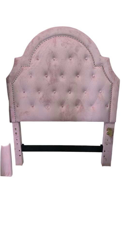 Regular price $80.00Regular priceUnit price / perSale price $80.00This beautiful pink twin-size bed frame is perfect for a stylish and cozy bedroom. With a plush tufted headboard and shiny silver stud details, it adds charm and elegance to any space.
