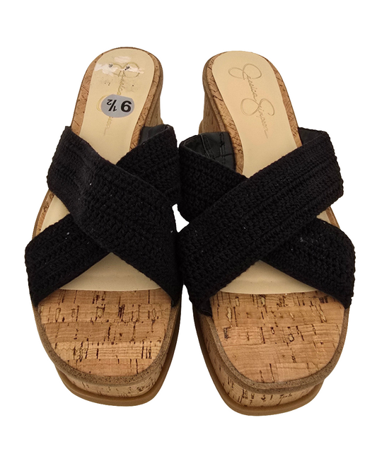 Jessica Simpson Black Woven Cork Wedge Sandals – Size 9.5